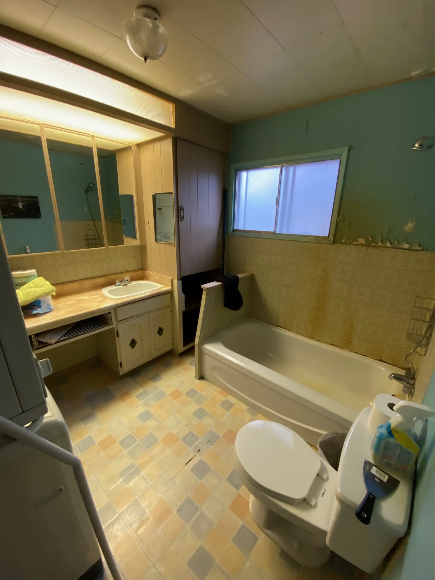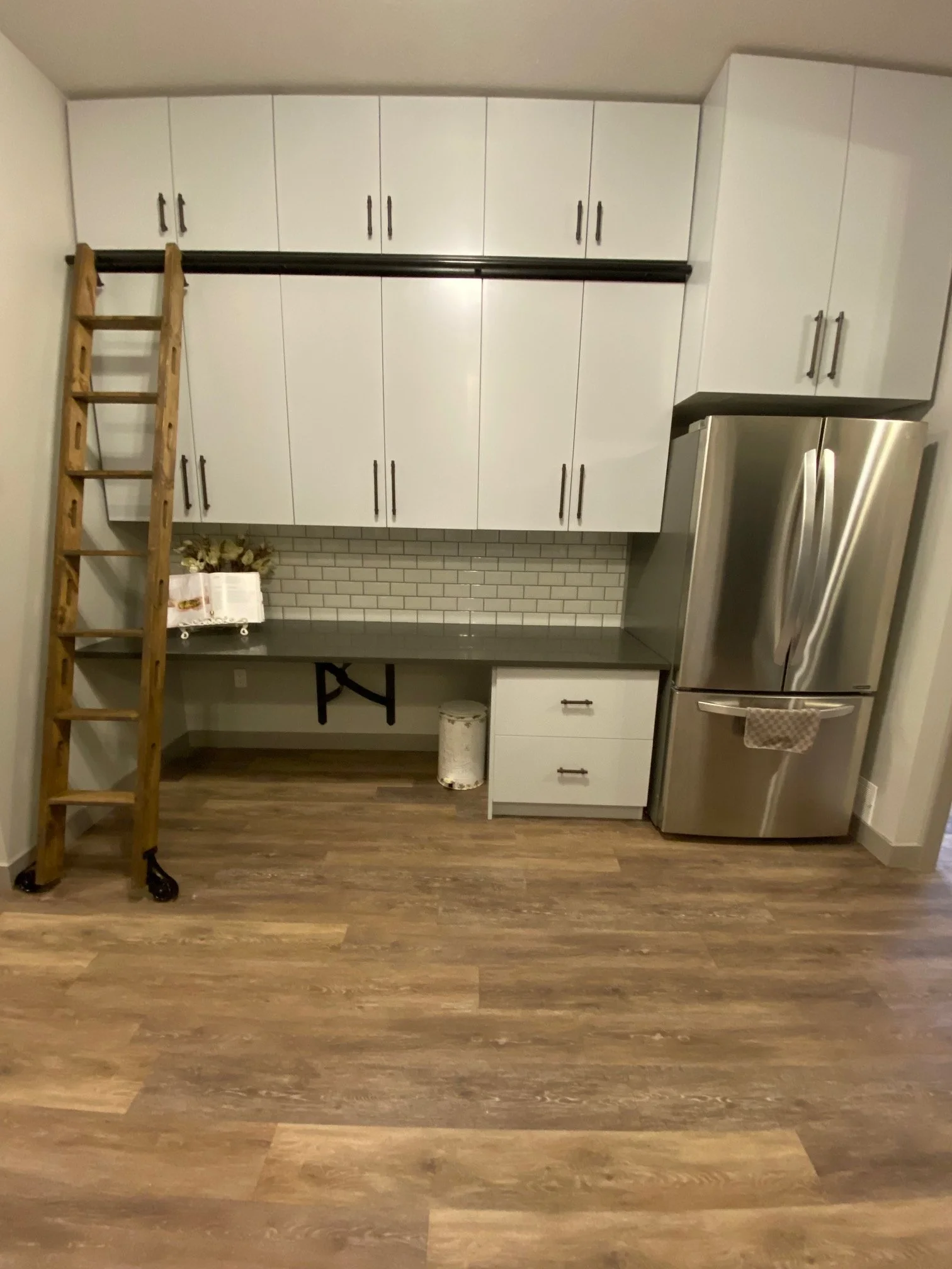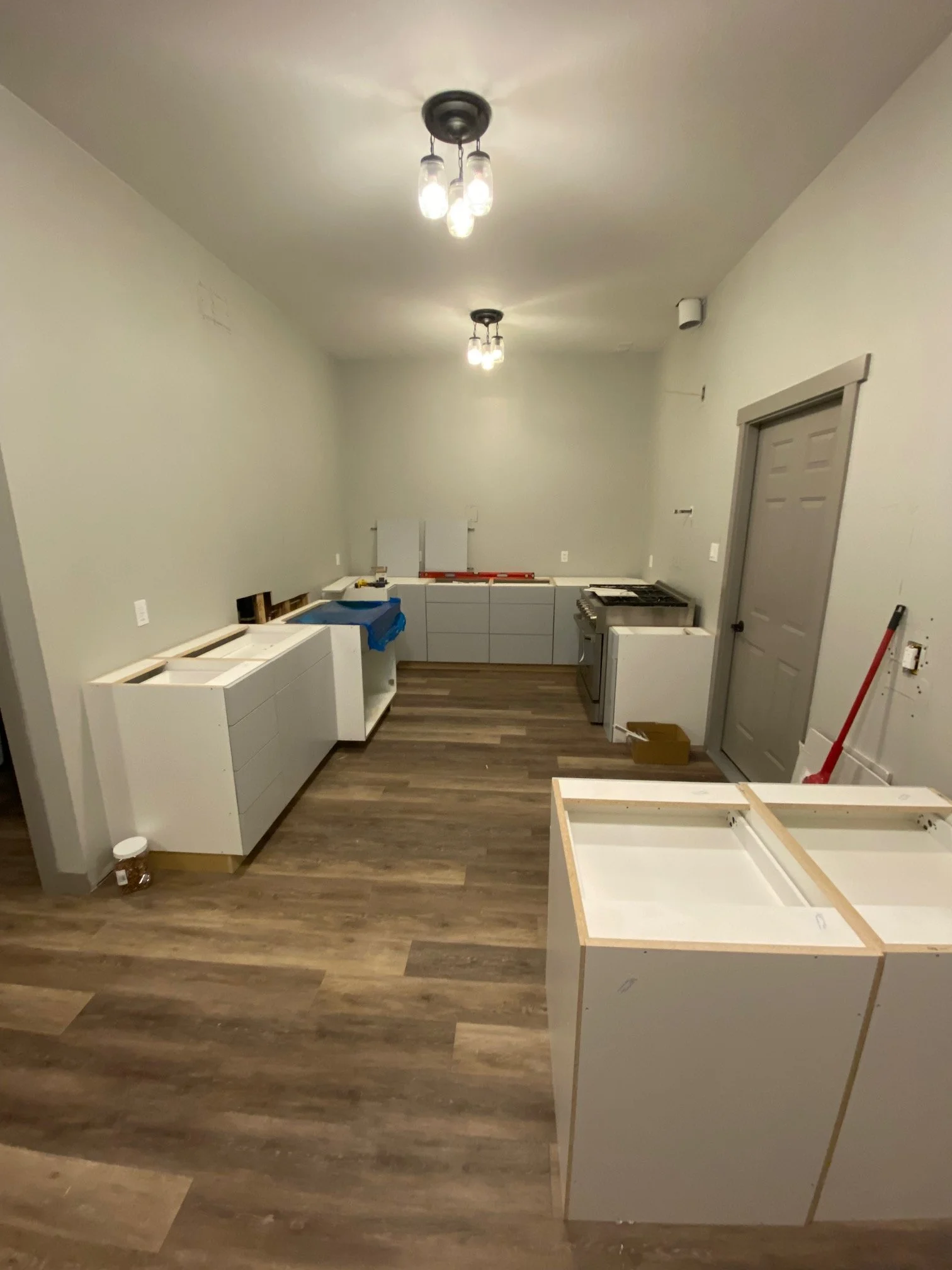 Transforming bathroom area into a kitchen